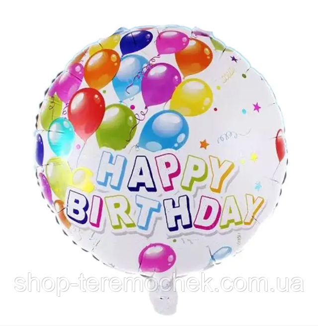 Куля фольгована біла кругла з написом Happy Birthday, кулька фольга з малюнком Кульки 45 см Китай
