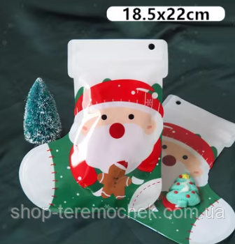 Сумочка для конфет, сладостей и подарков 22х18,5х5 см пакет с зип застежкой Новогодний зеленый сапожек